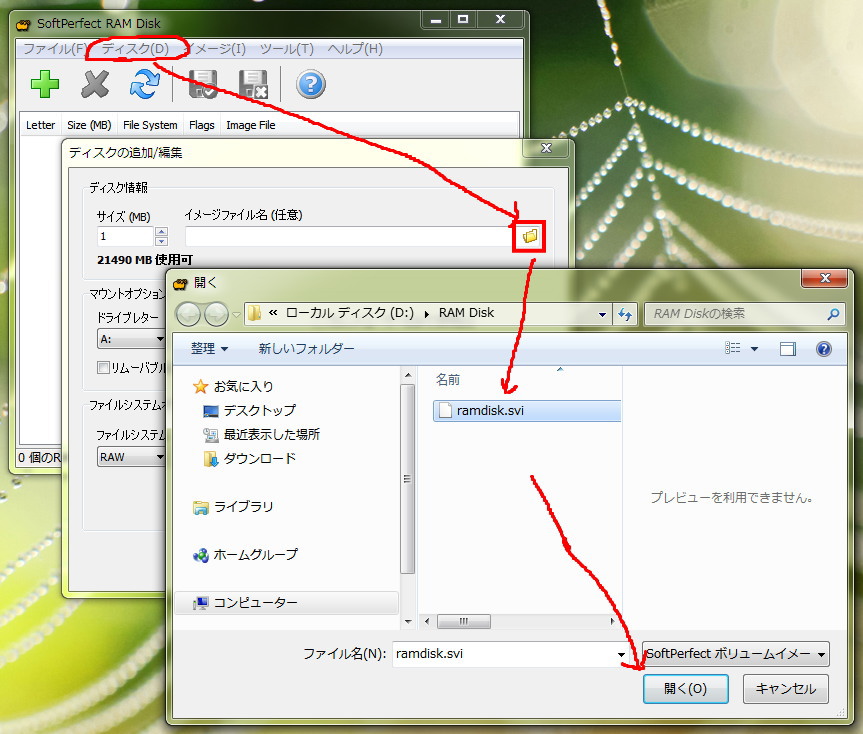 ローカルディスク(D:) → RAM disk→新しいフォルダ→ RAMdisk.svi✕