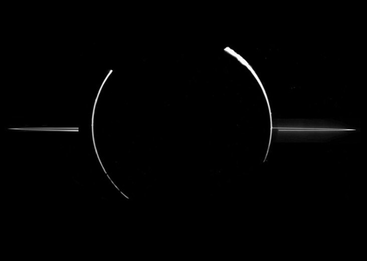 写真:木星探査機「ガリレオ」が撮影した木星の環。太陽と木星が直線上に並ぶ木星による日食の状態で撮影されたもの。