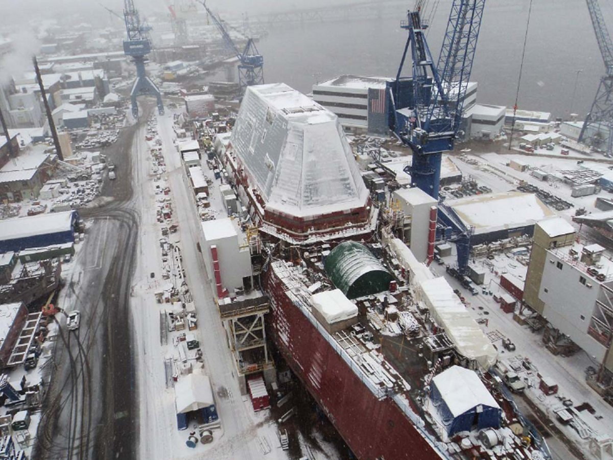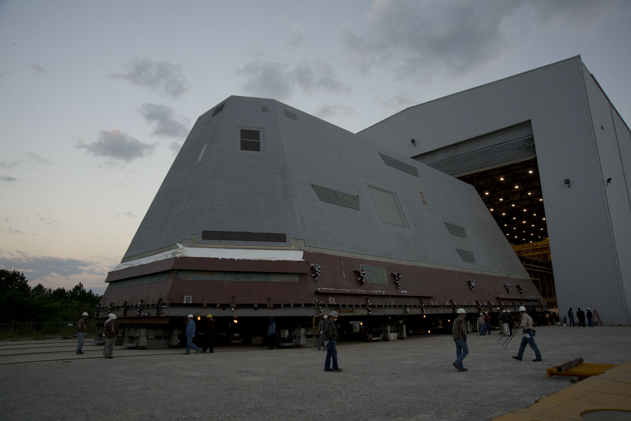 全長183m、横幅24.5m。直線的な構造が印象的なズムウォルト級ミサイル駆逐艦は1年半後の2015年頃の就役を目指し開発・テストが進めらる見込みです。