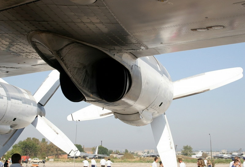 Tu-95は全長49.50m、全幅51.10m。分かりやすく表現すると一般的な50mプールを横に3つほど広げたサイズ。巨大な機体にもかかわらずNK-12MVターボプロップエンジン4基と二重反転プロペラにより最高速度はなんと950km/h(マッハ0.77)。そのため人類が開発したなかで最速のプロペラ機として有名です。