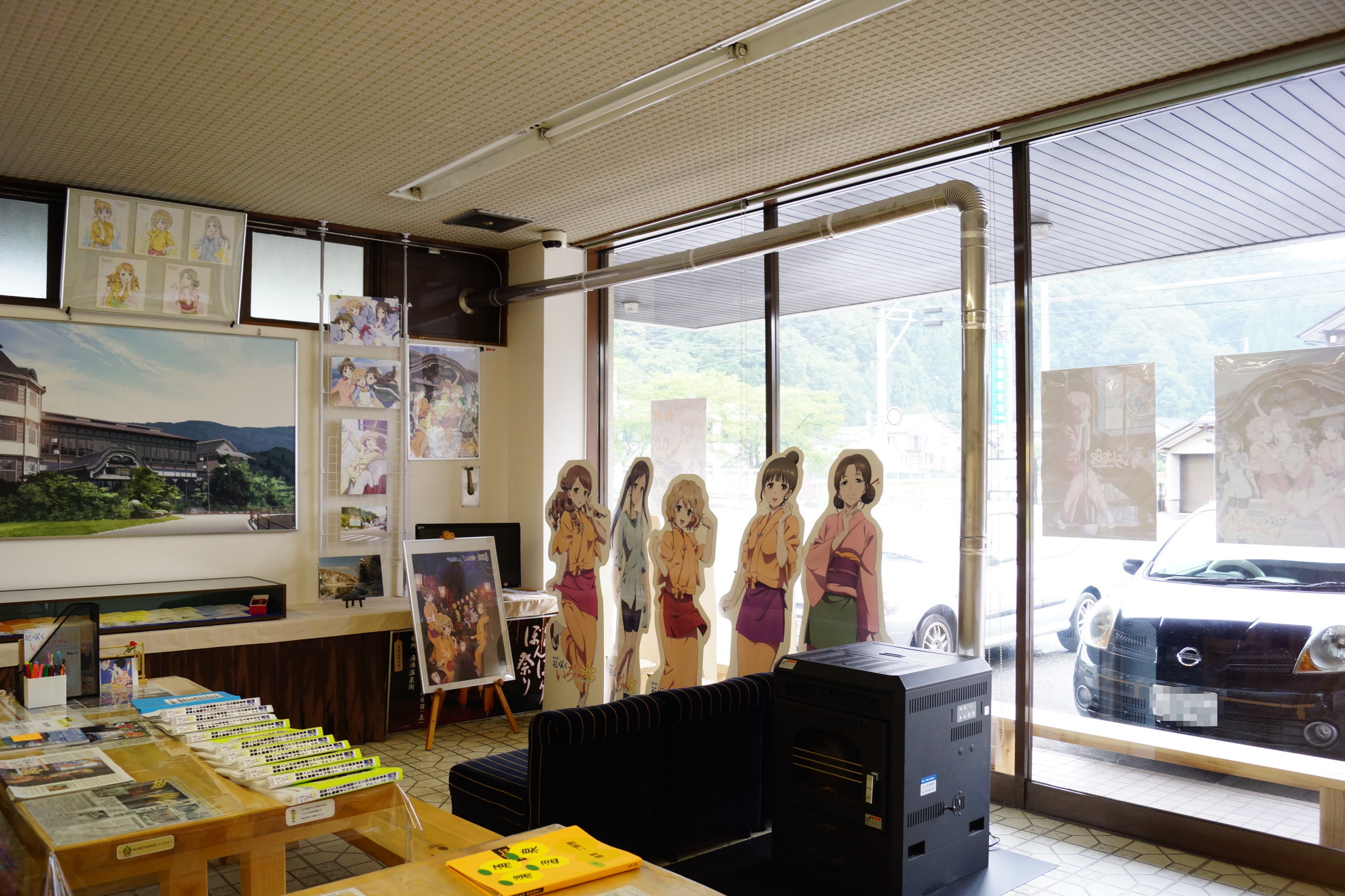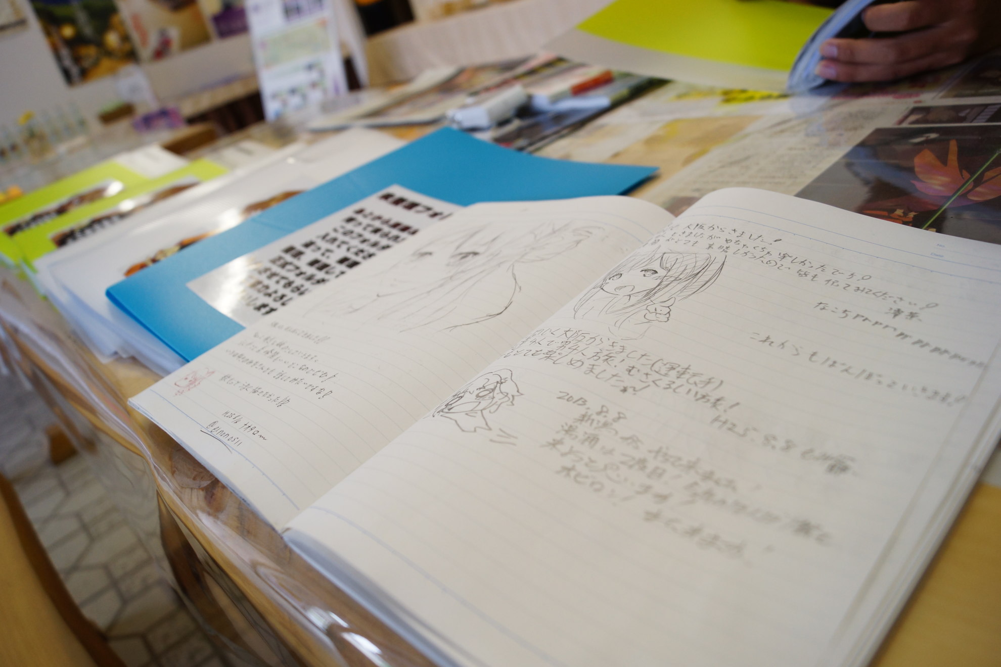 ▲湯涌温泉観光協会の一室には「ゆわく温泉いろは館」が設けられています。ここには『花咲くいろは』の原画のコピーや26話分の台本(閲覧不可)が展示されています。