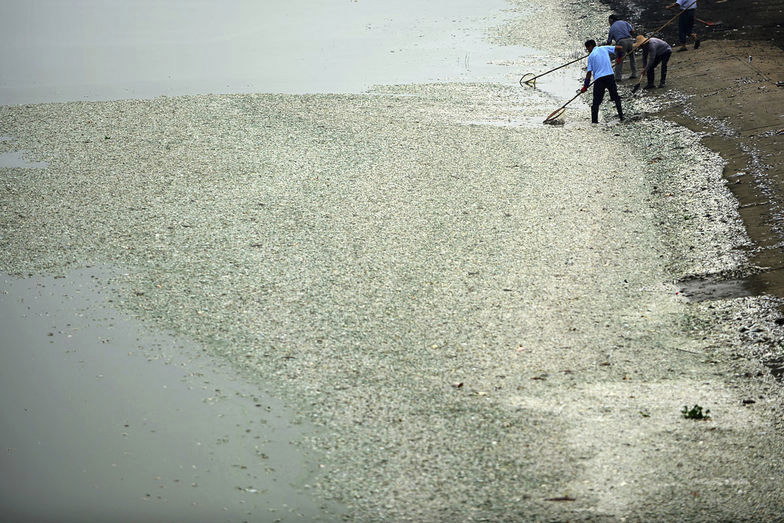 水面を覆う白い物体・・・。実はすべて死んだ魚です。中国当局は魚を口にすることを止めるよう促している一方、川の水から作られた飲料水は飲んでも問題ないと主張しているといいます。