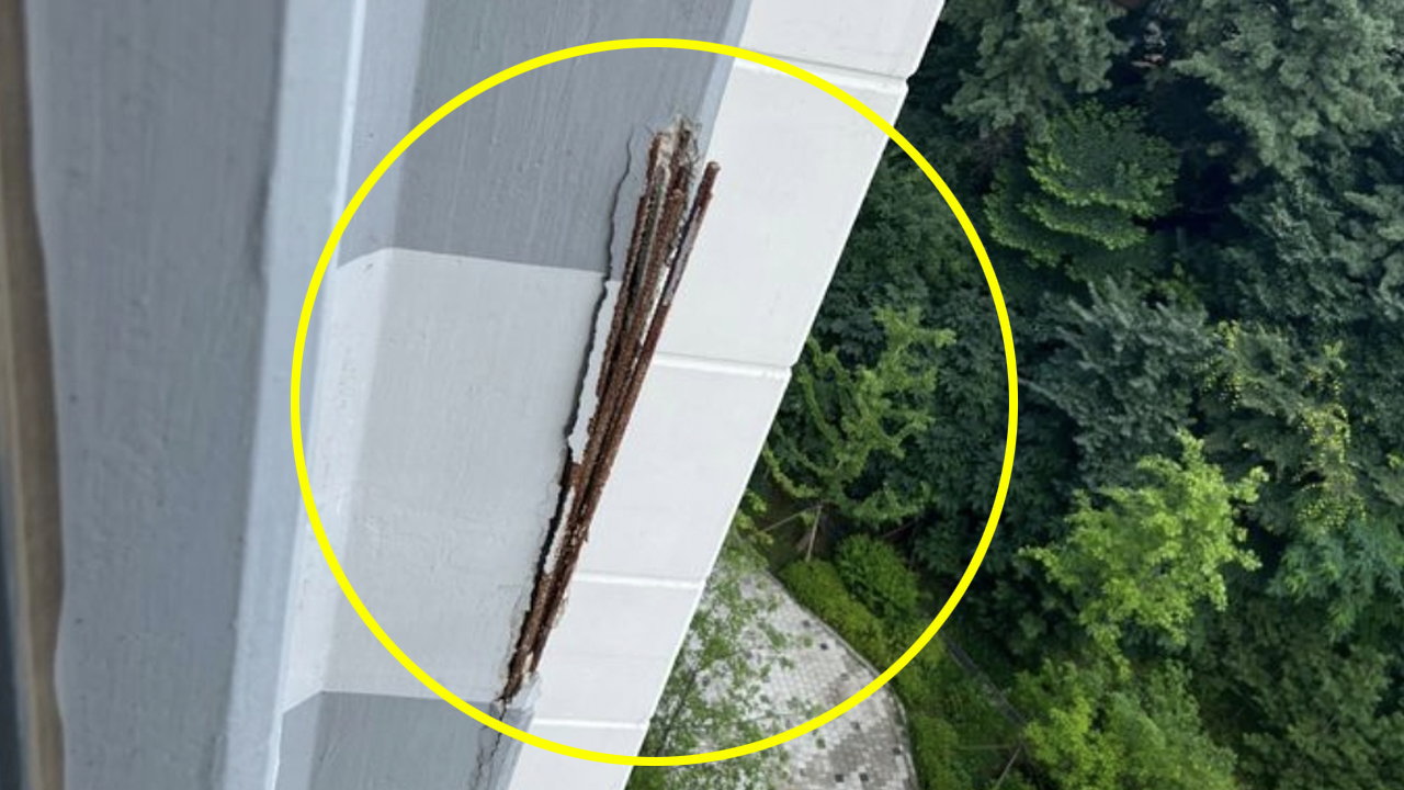 この写真は今月2日に該当アパート入居者専用コミュニティに投稿されてもので、写真を見ると外壁の隅に亀裂とともに鉄筋のいくつかが飛び出している様子を確認することができます。